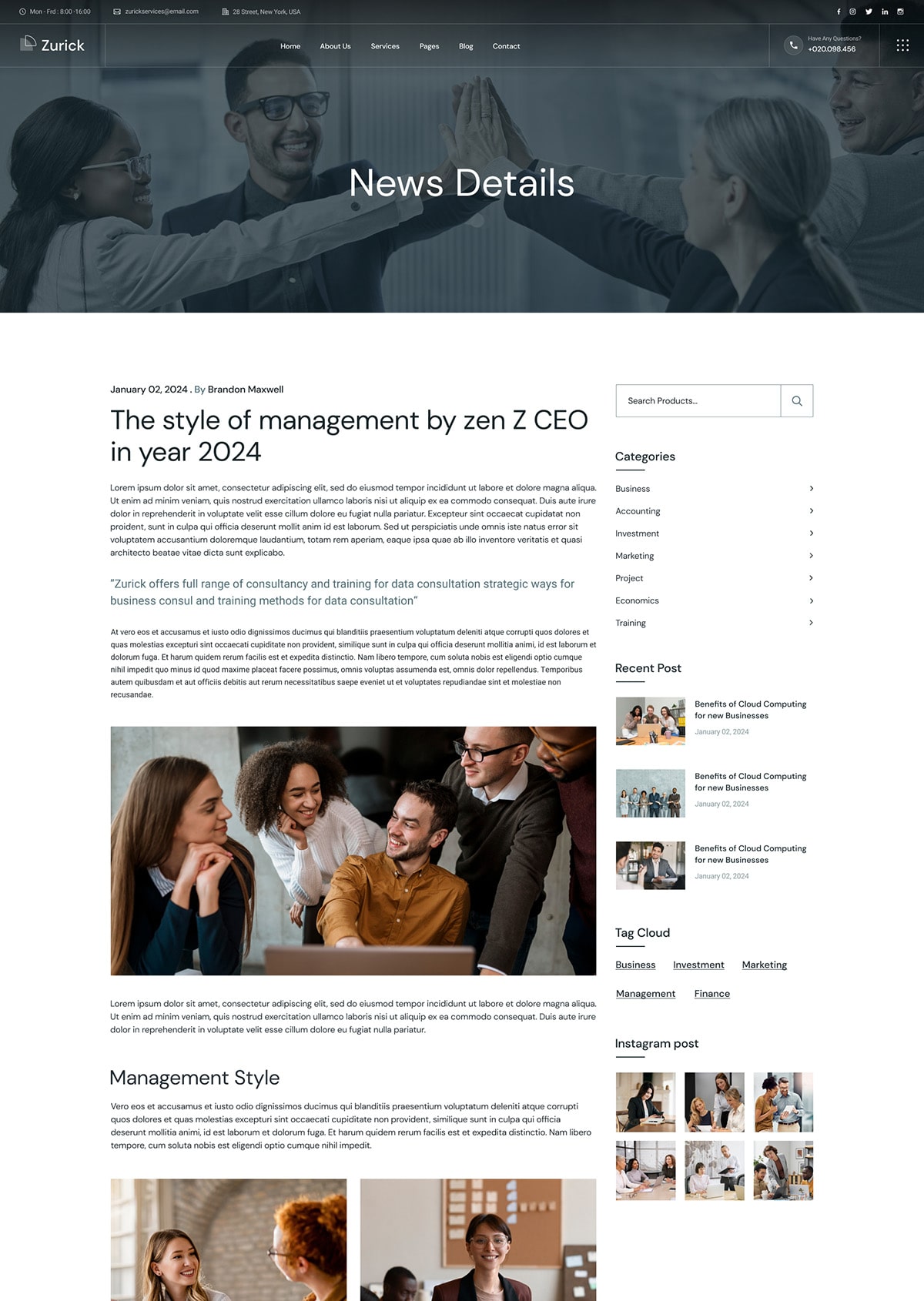 We have provide complete blog pages layout in this theme. You will get a versatile view of blog section & details layouts related to your website.